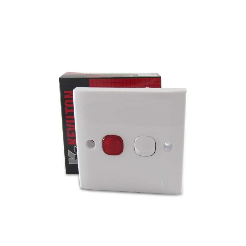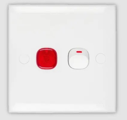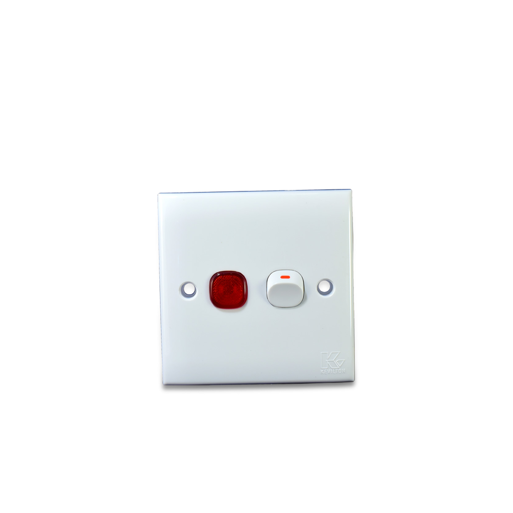 Product with the White front face with Integral rocker design of switch provides clear neon Red ‘ON’ indication.