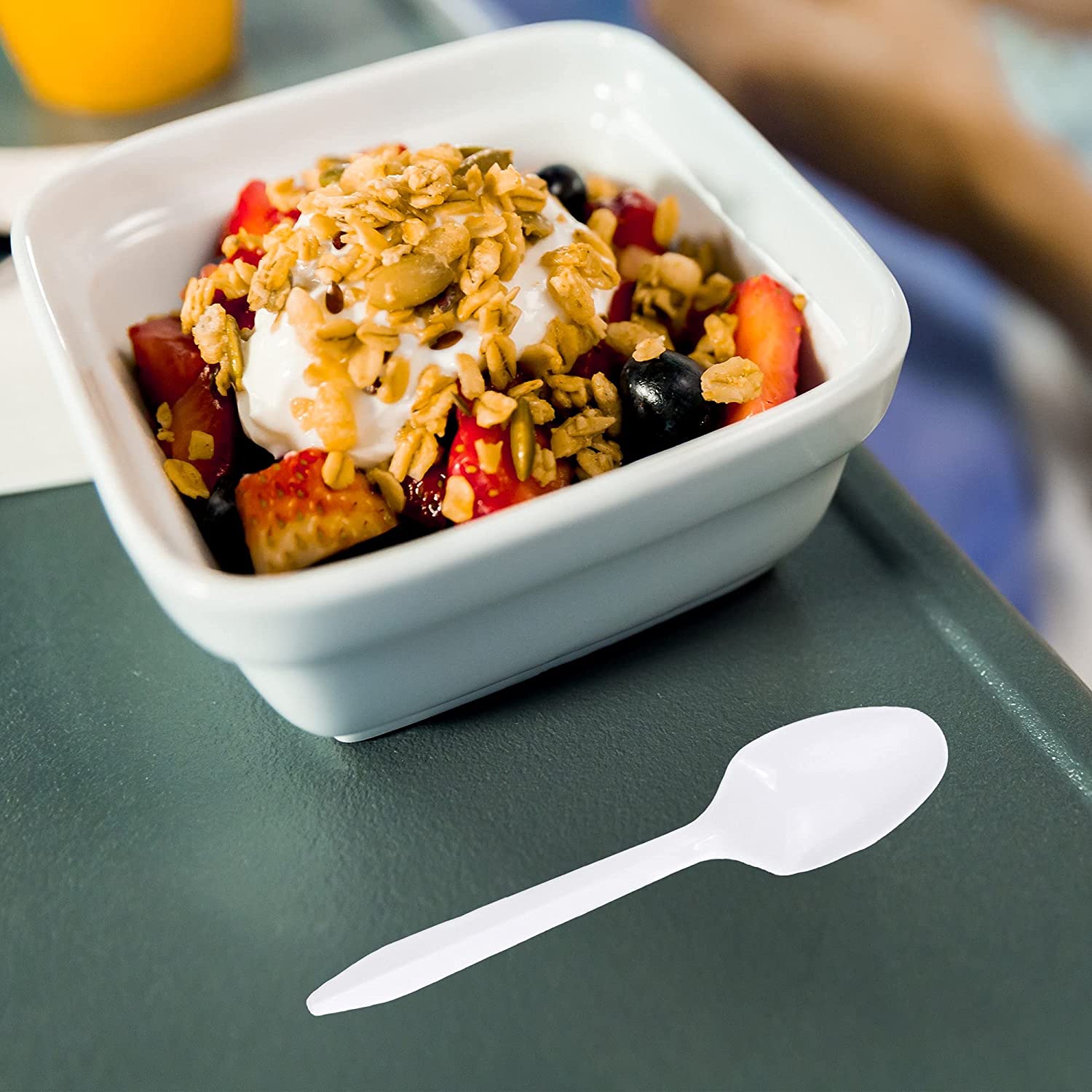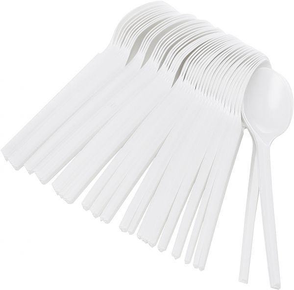 white plastic spoon is ideal for catering for large numbers, eliminating the need for washing up. Perfect for use at conferences, parties, events and exhibitions, they are also useful to have around the home for picnics and BBQs. The plastic cutlery is easily disposable, for a quick and efficient clean up after the event and goes perfectly with other plastic cutlery and crockery.