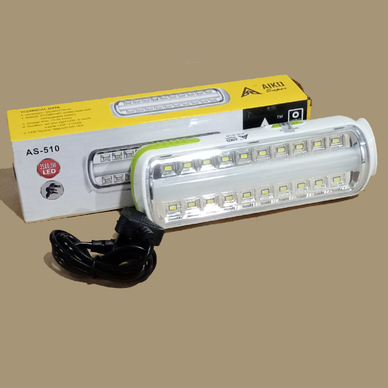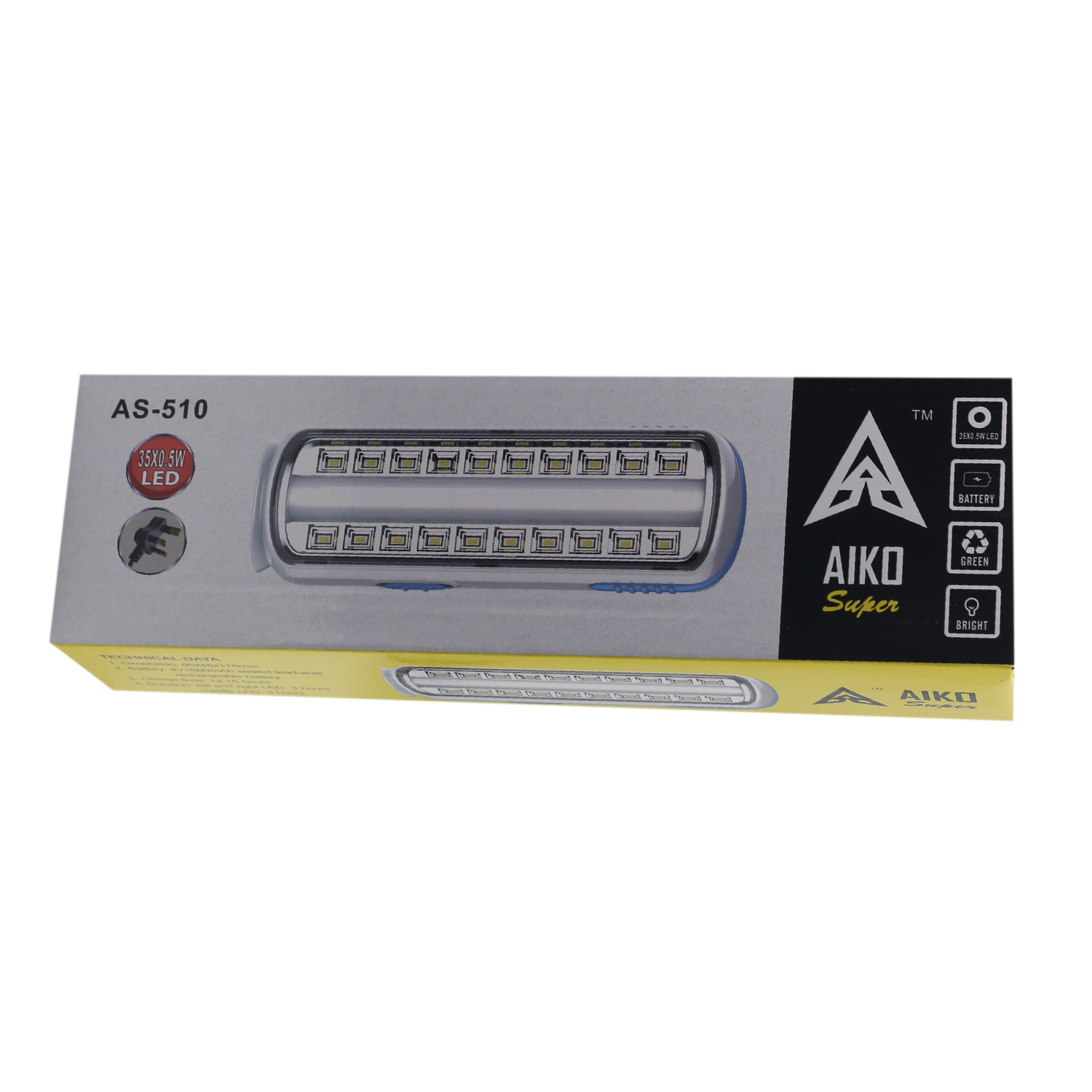 This Rechargeable torch is used for various applications, including camping, hiking, Emergency preparedness, automotive repairs, home maintenance, and outdoor activities. They provide reliable and long-lasting illumination, ensuring visibility and safety in low-light or dark environments. The Emergency light also comes with flat base to place it as a free standing light on top of a counter or table. The brightness setting on the AS-510 rechargeable light can be easily adjustable to extend battery life during long hours of power cuts.