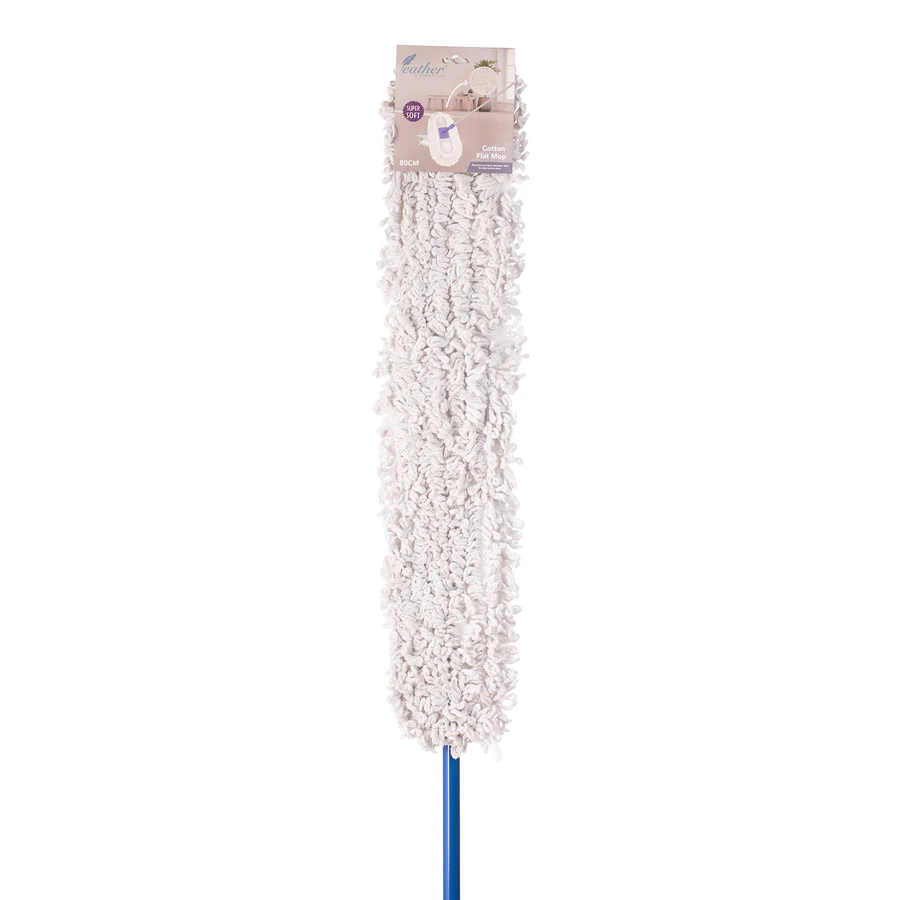 The Feather Cotton Flat Mop (80cm) is a powerful cleaning tool designed for large surface areas, making your mopping tasks quicker and more efficient. Crafted from high-quality cotton fibers, this mop provides excellent absorbency, effectively tackling spills, stains, and everyday dirt on a variety of floor surfaces, including hardwood, tile, and laminate. The generous 80cm width ensures expansive coverage, reducing cleaning time while allowing you to reach corners and tight spaces with ease. Lightweight and easy to maneuver, this flat mop is suitable for both wet and dry cleaning, ensuring your floors remain fresh and spotless with minimal effort.