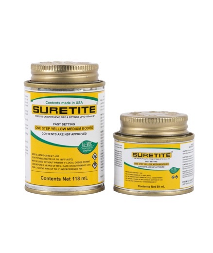 Premium, one step CPVC Solvent cement for residential and commercial hot and cold water systems. High performance fast set cement that delivers a strong permanent bond. Formatted for use without a primer if local codes permit. Medium bodied CPVC cement designed for copper tube size (CPVC) hot and cold potable water pipe and fittings up to 2″ (63 mm). All Weather use. Recommended application temperature 0o F to 115o F/-17o C to 46o C. Flow tite One Step is a registered trademark of Arrow Adhesives.