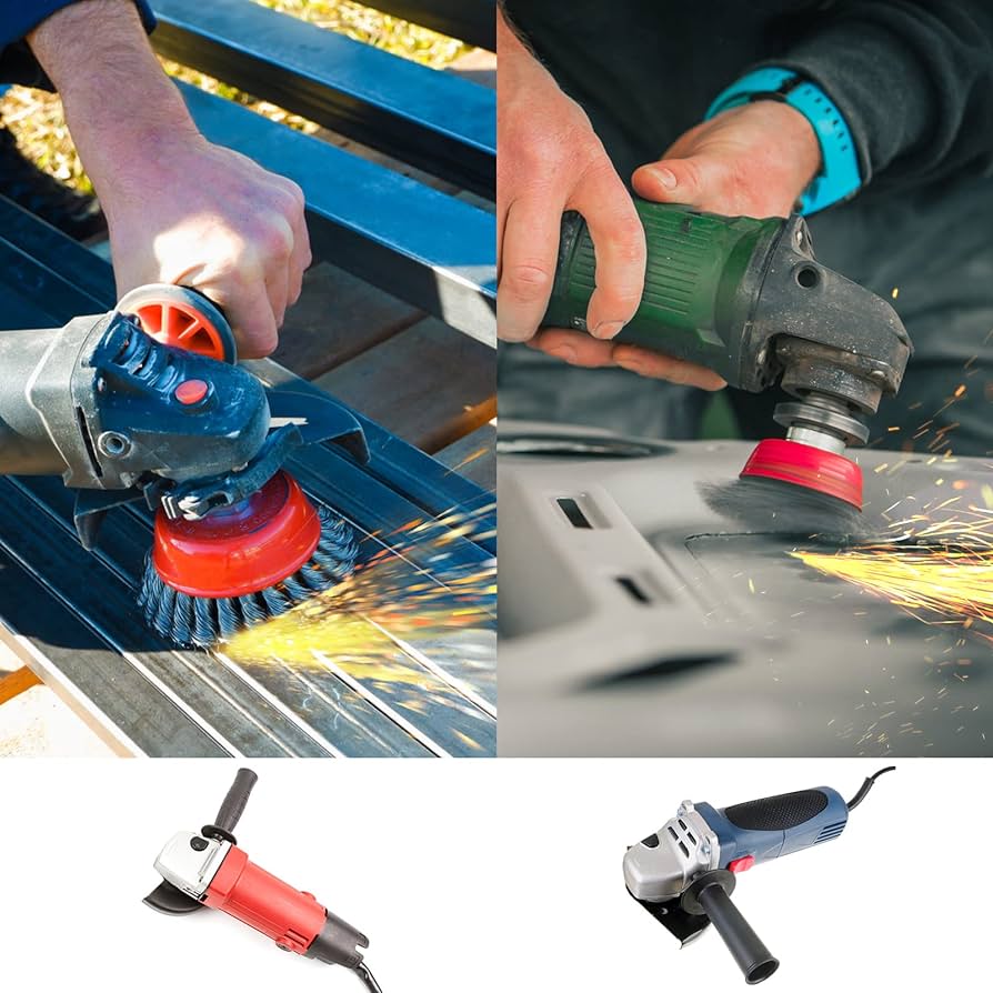 For the removal of paint, rust and dirt from metal surfaces that require a lower level of treatment strength. Wire cup brushes are designed for removing rust, scale, paint, and other surface preparation including deburring and polishing. They are intended primarily for use with portable power tools, such as an angle grinder, and feature a threaded hole and nut.
