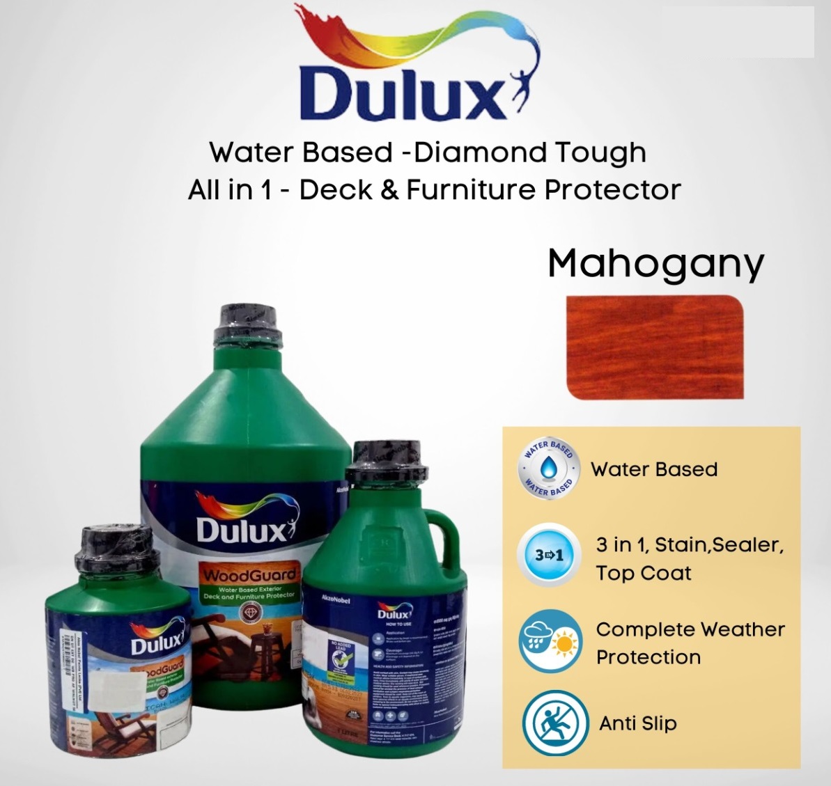 Dulux Tough Exterior Deck Water Based Protector Mahogany – 1 Liter: