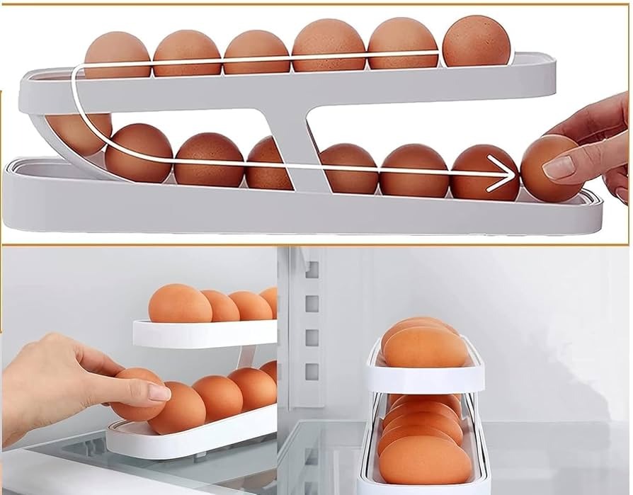 The Rolldown Egg Dispenser is a convenient and innovative kitchen accessory designed to store and dispense eggs with ease. This practical device features a unique roll-down mechanism that allows you to easily access eggs one at a time while keeping the remaining eggs securely stored. Made from durable materials, it helps protect eggs from breakage and keeps them organized, making it ideal for any kitchen. Its compact design allows for easy placement on shelves or countertops, maximizing space. The Rolldown Egg Dispenser not only adds a touch of modernity to your kitchen but also simplifies your egg storage, ensuring you always have fresh eggs on hand.