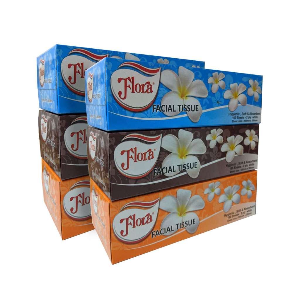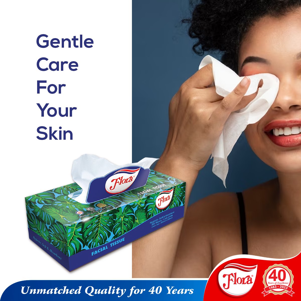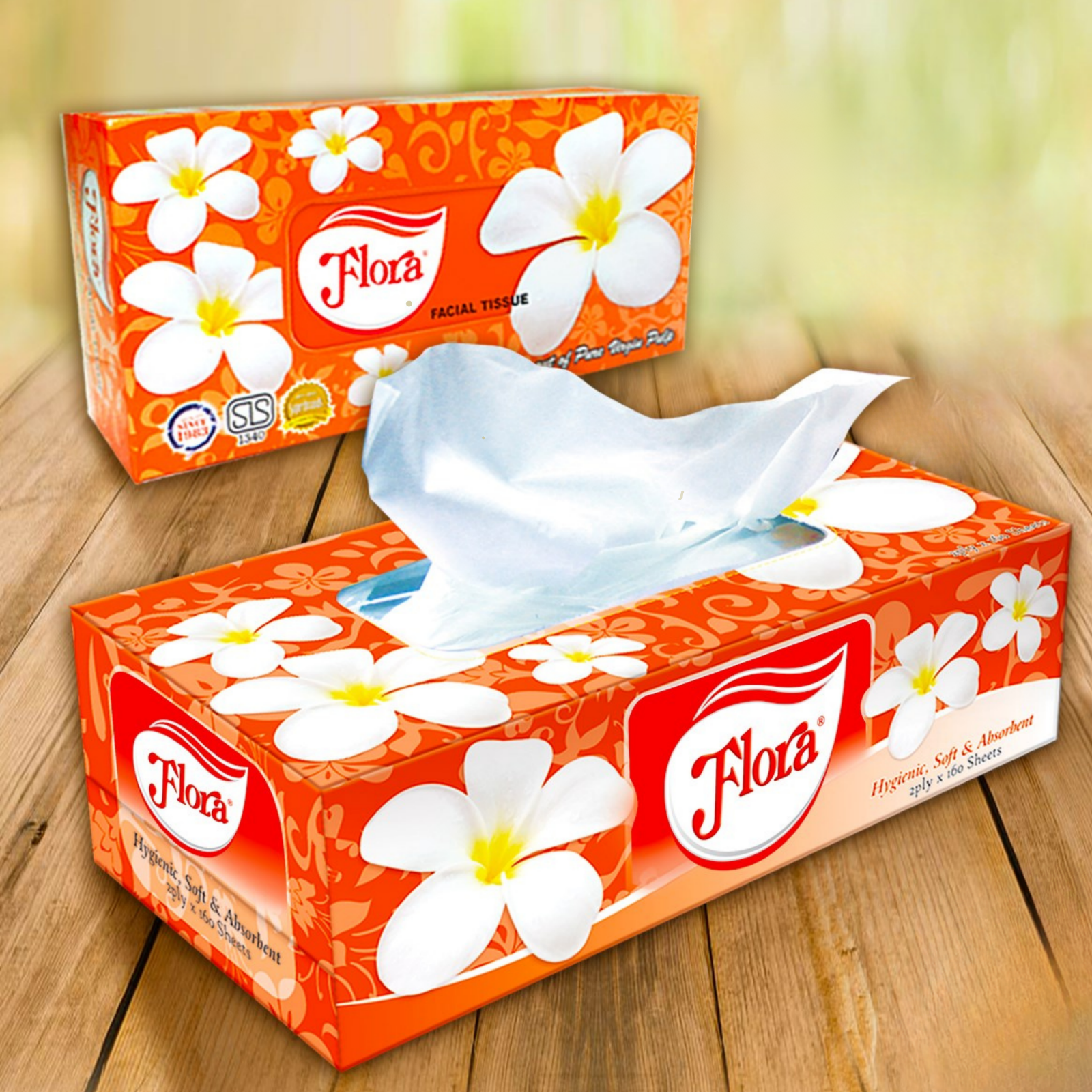 Hygienic, Soft and Absorbent Flora Facial Tissue is certified as SLS 1340 by the SriLanka Standards Institution. Flora Facial Tissues is available in four different sizes, namely 50’s, 100’s, 160’s and 200’s sheets per box. Flora Facial Tissue is essential for you for facial makeup, to clean your face on a hot day or for hygienic purpose, when you have a runny nose. It is dust-free and safely cleans your face.