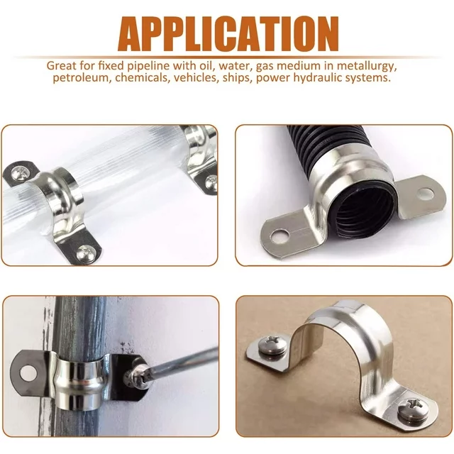 Widely used in plumbing, petrochemical, power supply, and other pipeline laying, fixing all kinds of pipelines on wood, masonry, or similar surfaces. Great for using in pipe fixture on various surfaces and support structures; Two screw holes allow the installer to secure pipes on walls and ceilings, feature a reinforced rib for extra strength.