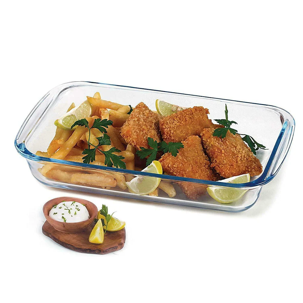 Bake, serve, store, and reheat all in the same dish. The glass baking dishes make it easy to cook meals ahead of time and store in the refrigerator or freezer for later. Best of all, the bakeware transitions beautifully from oven to any table setting for graceful serving, and leftovers can go right back in the fridge at the end of the night-no need to dirty multiple dishes. Can be used in a microwave or electric oven. Not for use over direct flame, Pre-heat convection oven before use for best results, Do not put the hot dish on a cold or wet surface, Allow the hot dish to cool slightly before adding any cold liquid to the food , Allow dishes with very hot food to reach room temperature before putting it into the fridge/freezer, Do not use abrasive cleaners to ensure that glass stays scratch-free.