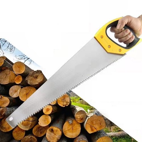 This hand saw is a manual cutting tool used for cutting through various materials, particularly wood. It consists of a handle and a long, thin blade with sharp teeth. Hand saws are versatile tools that can be used for a wide range of woodworking tasks, such as cross-cutting, rip-cutting, and precision cutting.