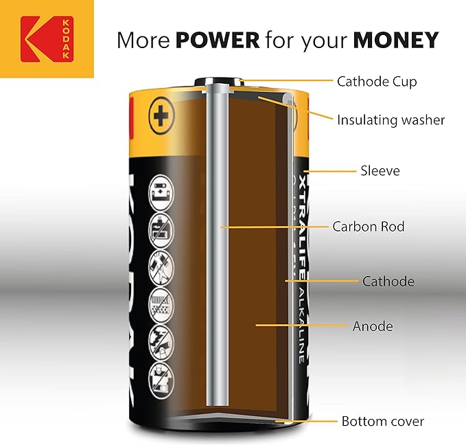 The KODAK XTRALIFE Alkaline is an alkaline battery designed for everyday use for both high and medium power devices. These devices provide longer operation compared to normal carbon-zinc batteries.