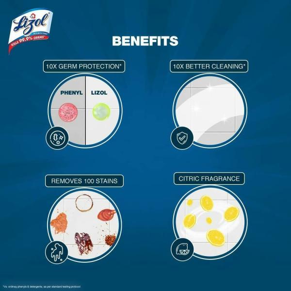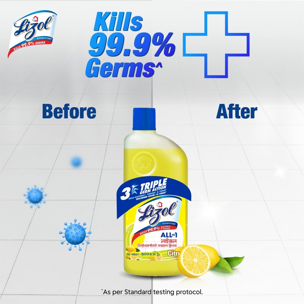 Keep your home fresh and germ-free with Lysol. Lysol Disinfectant Surface Cleaner contains a distinctive formulation that kills 99.9% germs and gives 10 times better cleaning and germ protection than standard Phenyls, keeping the whole house cleaner, shinier and germ free. We are constantly exposed to micro-organisms. Exposure to bad germs can cause food poisoning, diarrhea and other kinds of diseases. Lyzol floor cleaner saves you from harmful germs whilst keeping you and your home clean. So, practice good hygiene and cleanliness with Lysol that will prevent these problems.