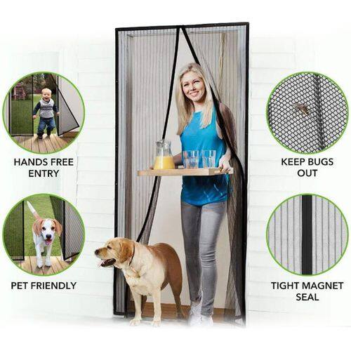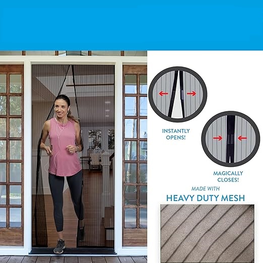 Magic Mesh – Hands-Free Screen Door opens easily then closes itself behind you using 14 powerful magnets. So, if your hands are full or you have a forgetful family member, you can still let fresh air in and keep annoying bugs out! it goes up in seconds with no tools required and stays up all season long. Plus, it folds up for easy storage. Can easily walk through. And Keep fresh air in and bugs out.