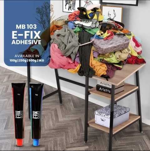 The Multibond e-fix is a two component epoxy adhesive for household and industry. Bond metal, wood, glass, ceramic, cement, concrete, earth ware, granite, fiberglass, hard plastic, rubber/leather, and many other materials to themselves and to other rigid surfaces.