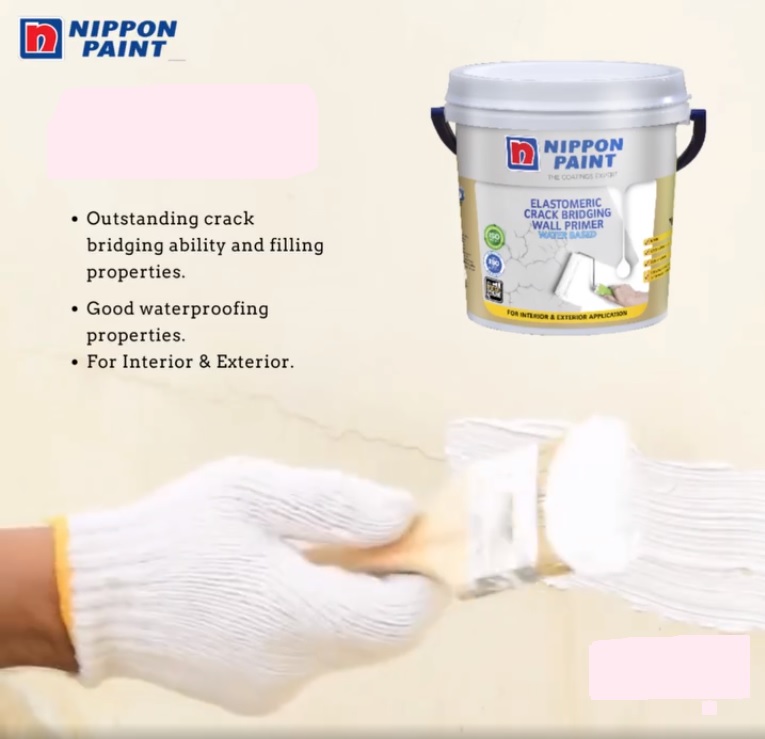 Nippon Elastomeric Crack Bridging Exterior Wall Primer is an excellent primer to protect the topcoat on both interior and exterior walls which are prone to hairline cracking due to the movement of the substrate to be painted. It has good elongation properties necessary to accommodate the movement of hairline cracks in masonry substrates. To some extent it has waterproofing properties.