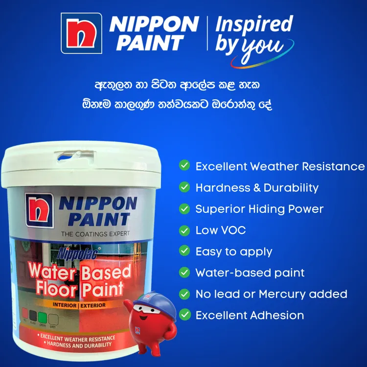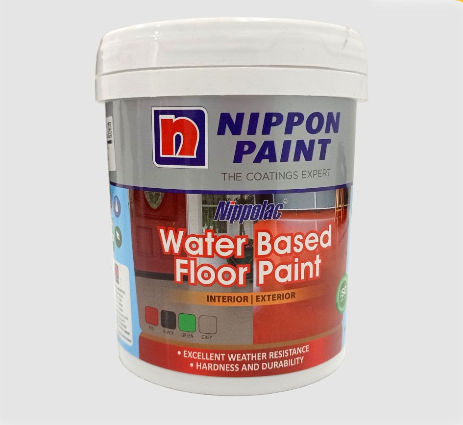 Nippon water based floor paint is 100% acrylic coating specially designed for use on properly prepared interior and exterior floors, porches and other cementitious surfaces. Its smooth, low sheen finish provides excellent weather resistance, hardness and durability which resists fading and peeling off. It applies easily, is an environmentally friendly with excellent coverage. Nippon water based floor paint can be applied to well prepared, previously painted surfaces.