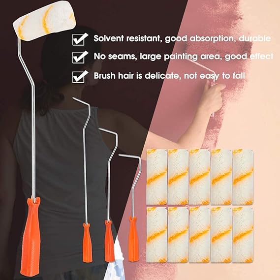 Well-fitted roller caps minimise slippage during painting, ergonomic and easy-to-roll-on action for the perfect finish, heavy-duty and solvent-resistant roller handle, can be used with foam, fabric and Mohair roller refills.
