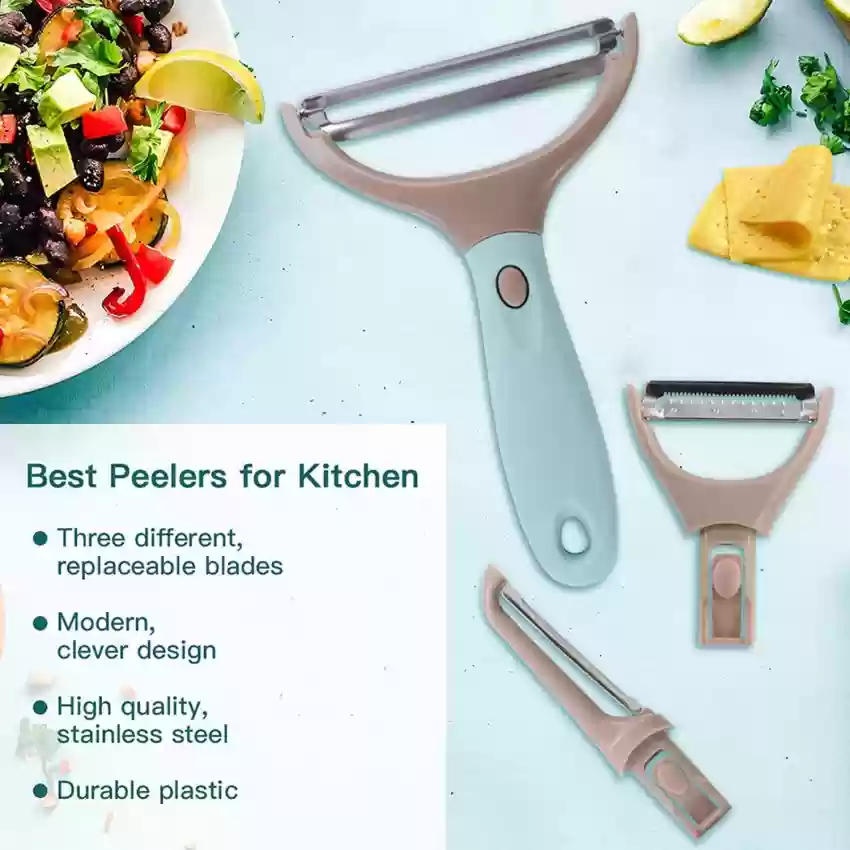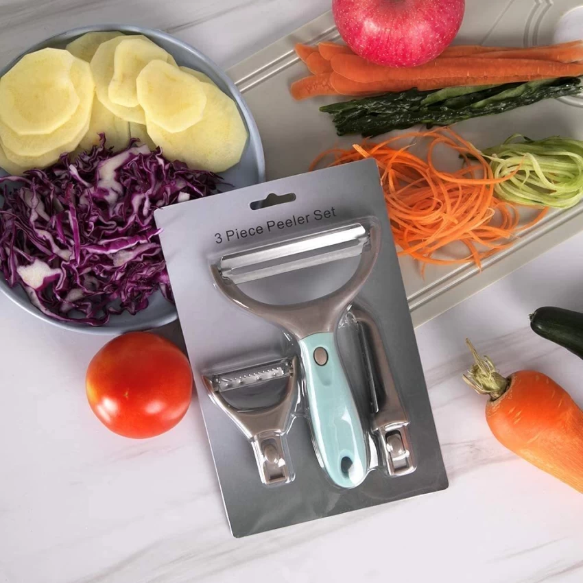 The 3 PCS Peeler Set is an essential collection for any kitchen, designed to make food preparation quick and easy. This set typically includes three different peelers, each tailored for specific tasks: a standard peeler for fruits and vegetables, a julienne peeler for creating thin strips, and a serrated peeler for soft-skinned produce. Made from durable materials, these peelers feature comfortable grips for effortless handling and precision. Their compact design allows for easy storage in a kitchen drawer or utensil holder. Whether you’re prepping ingredients for a meal or adding garnishes, the 3 PCS Peeler Set ensures you have the right tool for every peeling task.