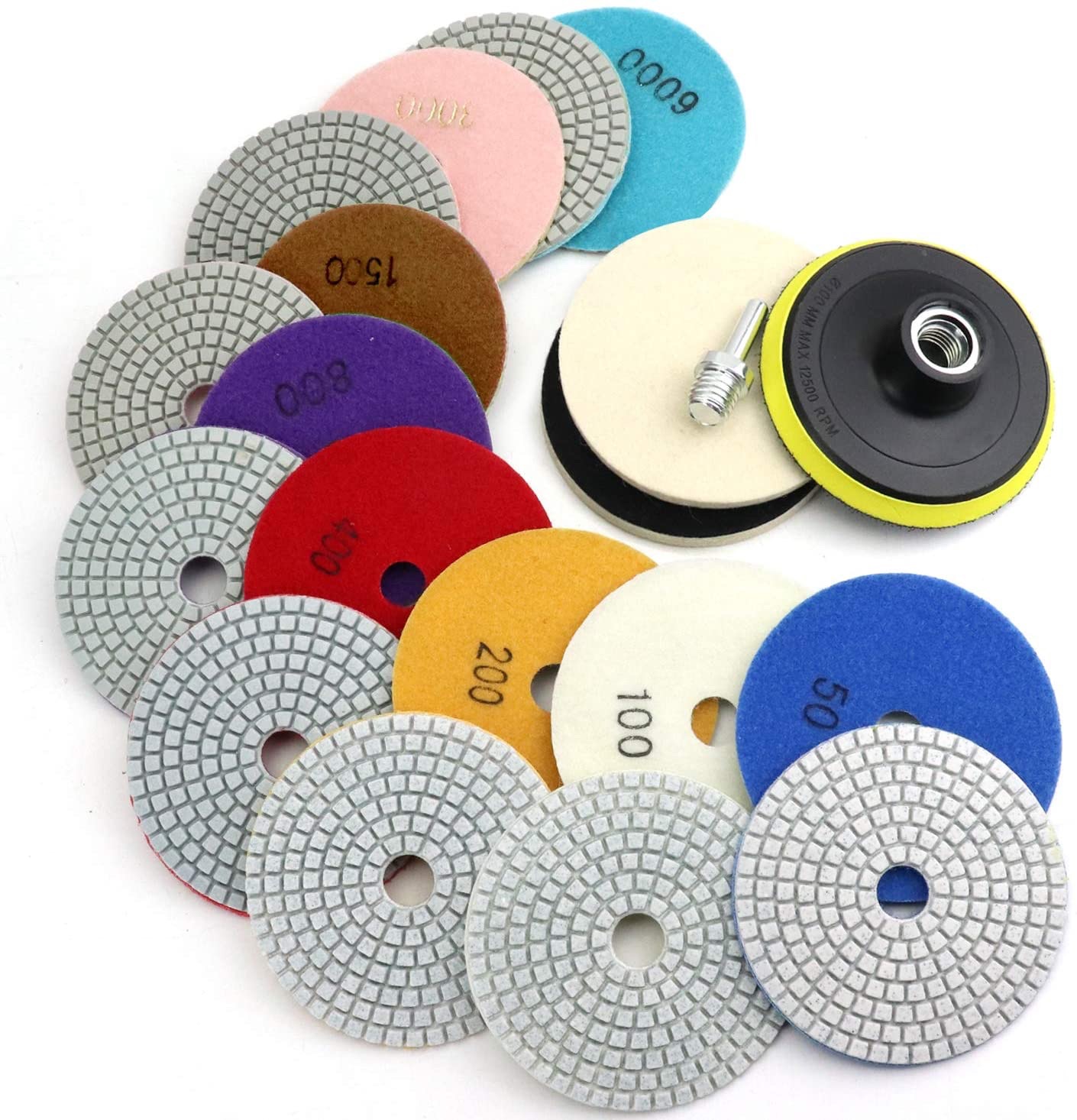 This polish pad is an abrasive tool used for polishing and buffing various surfaces to enhance their shine and smoothness. It is typically made of a flexible material, such as foam or fabric, with an abrasive coating or infused polishing compound.