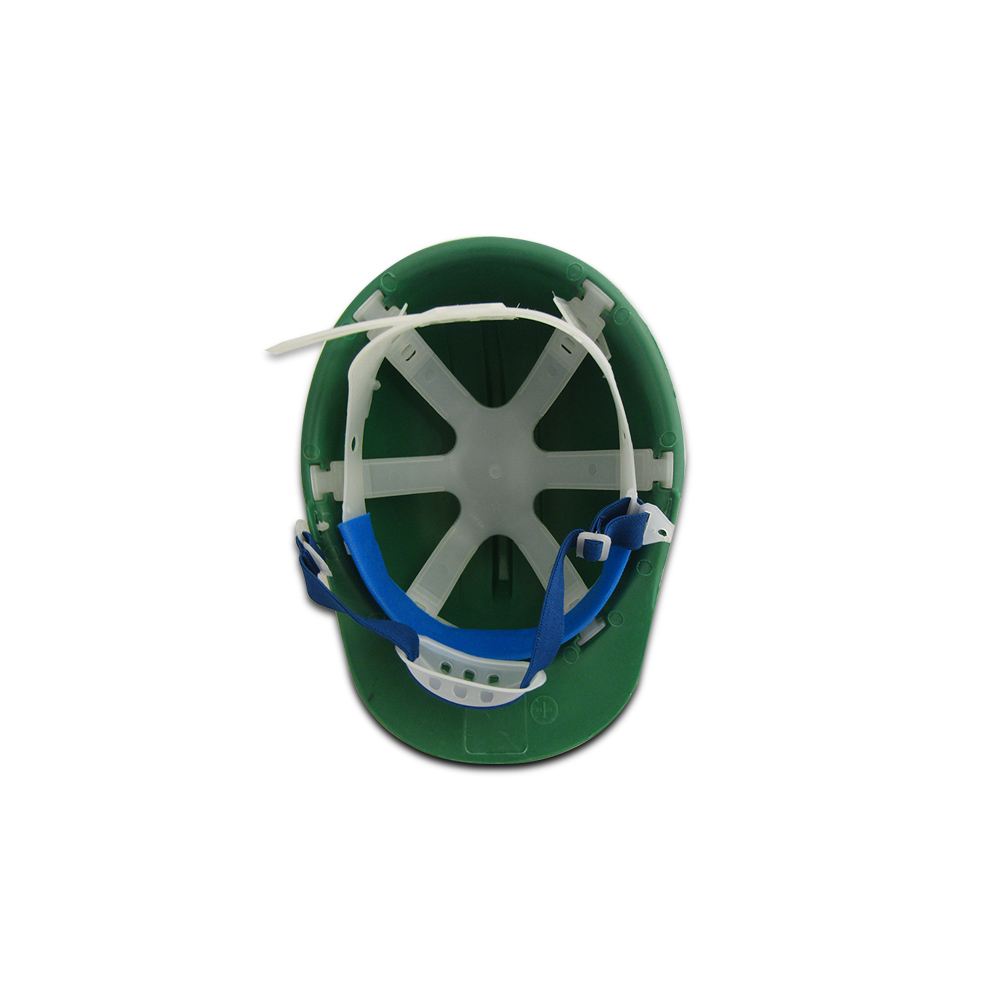 Safety Helmet Green lightweight and balanced for all-day for easy visibility Made of a durable polyethylene shell . Environments with low chemical resistance requirements. Heavy industrial environments – grinding, surface finishing operations. Building industry. This is designed to protect the head from impact, falling objects, electrical hazards, and other potential workplace hazards. It is commonly used in industries such as construction, mining, manufacturing, and utilities.