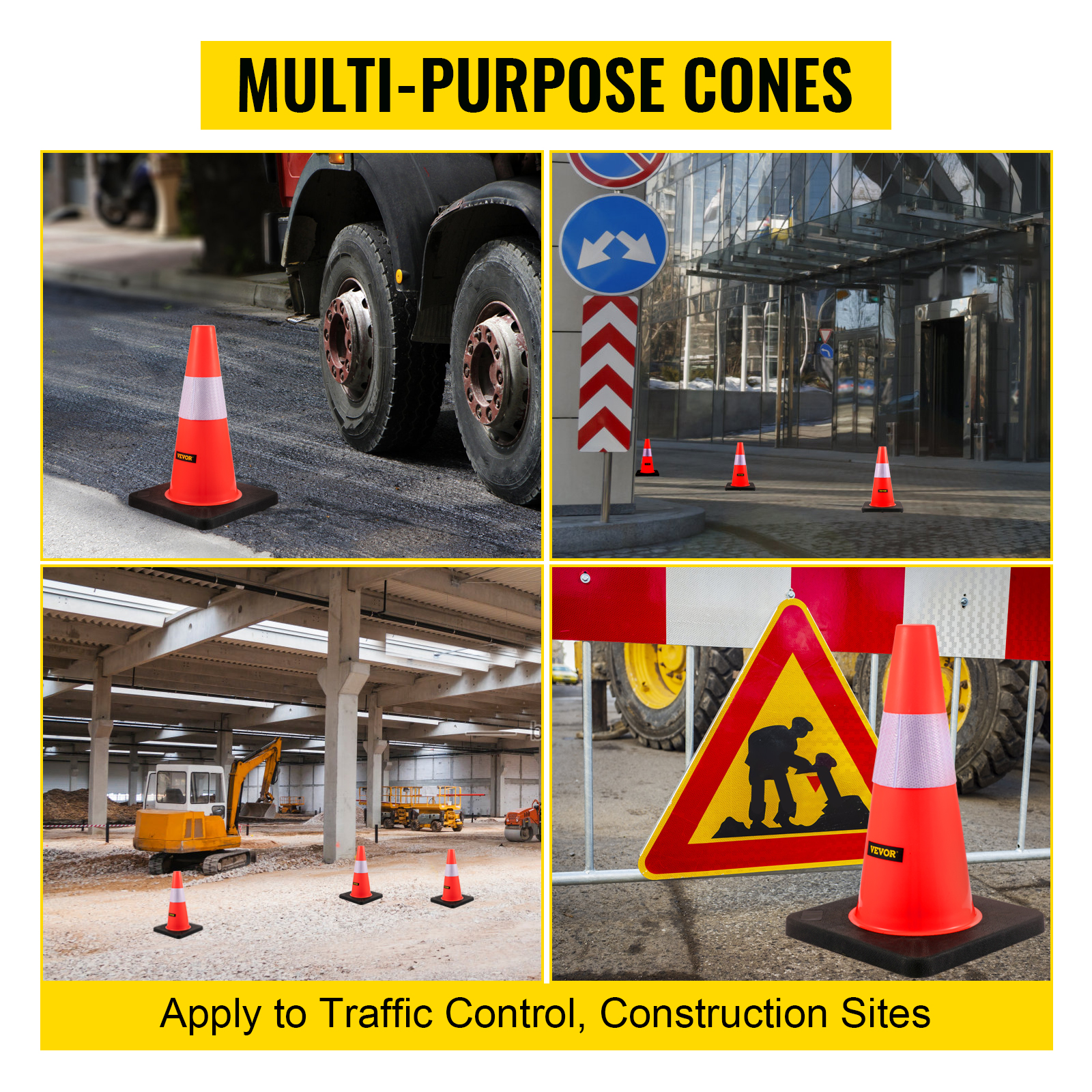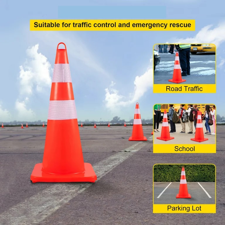Safety Road cones are made of premium PVC construction for all weather conditions, reflective collars for 360 degree visibility. Perfect for traffic safety and control, construction sites, hazard marking and a variety of other applications.
