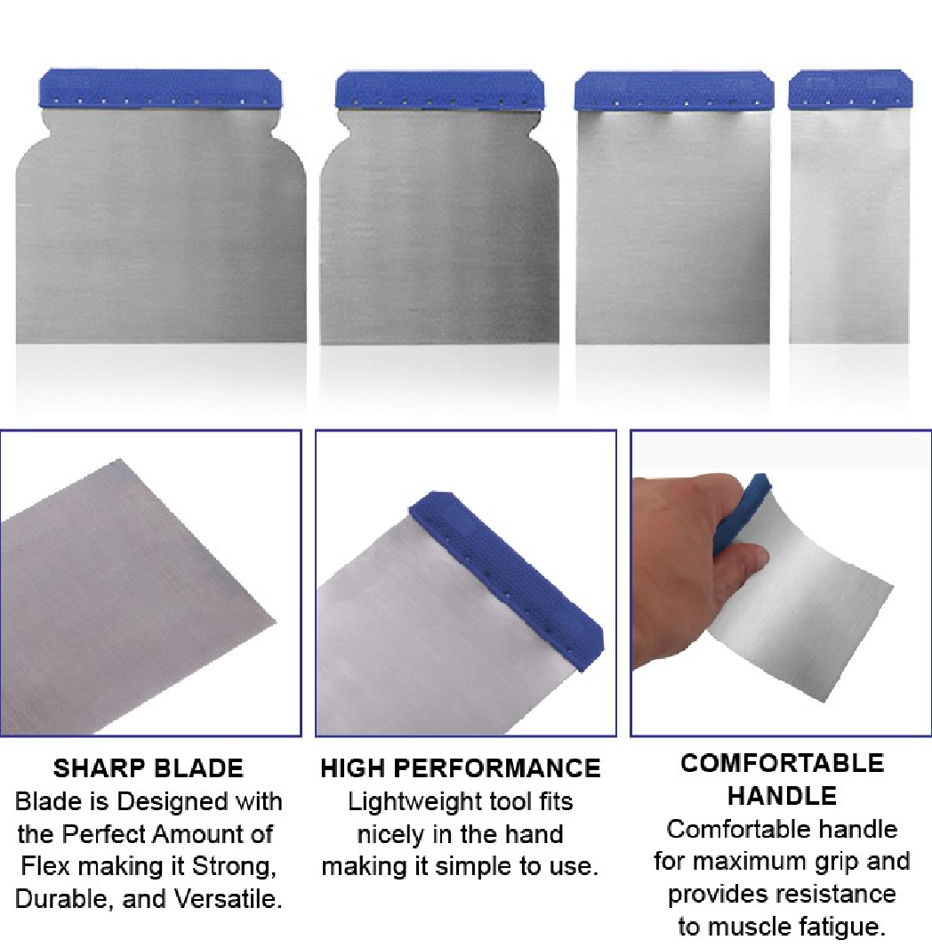 Ideal for all your scraping jobs and more, this high-quality scraper set effectively removes as much material as medium-grade abrasive paper without damaging surfaces. With an easy-to-use design, it has flexible stainless steel blades that make removing and scraping surfaces a breeze.