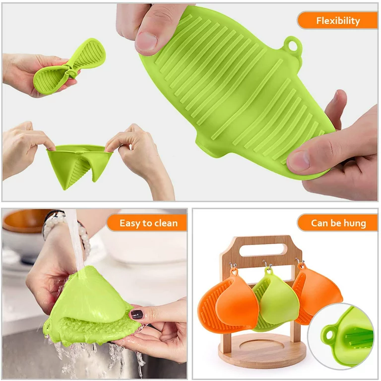 Highly recommend nest within each other for use for removing hot things from microwave or oven. Specifications of Silicone Oven Mitts Heat Insulation Pinch Grips Cooking Gloves Finger Protector for Kitchen Cooking & Baking.