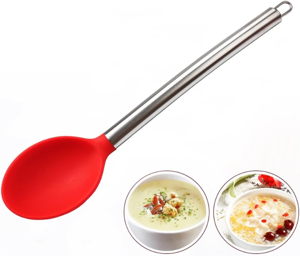 Introducing the Silicone Spoon with Stainless Steel Handle, a perfect blend of style and functionality for your kitchen. Crafted from high-quality silicone, this spoon is designed to be heat-resistant, ensuring it won’t warp or melt during use. The sturdy stainless steel handle provides a comfortable grip and durability, making it ideal for stirring, mixing, and serving. Its sleek design not only adds a modern touch to your kitchen but also makes it easy to clean. Elevate your cooking experience with the practical and elegant Silicone Spoon with Stainless Steel Handle!