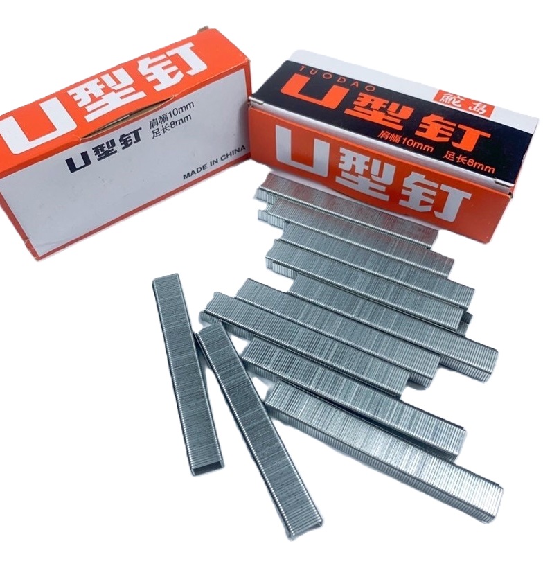 The Wall Stapler Gun Pins 10mm x 8mm are designed for use with stapling tools, providing secure fastening for various materials such as fabric, upholstery, and insulation. These pins are 10mm in length and 8mm in width, making them ideal for wall stapling and other heavy-duty applications. The pins are crafted from durable metal for strength and longevity, ensuring a firm hold and reliability during use. Perfect for both professional and DIY projects, they offer precise and secure fastening, enhancing the efficiency and effectiveness of your work.