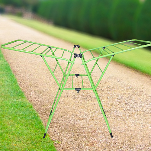 A great alternative to machine drying which can often ruin delicate fabrics, this folding drying rack provides an eco-friendly and gentler way to dry your clothes. The top tier features horizontal rods those bulky sweaters, heavy duty jeans, dresses or linen. The bottom shelf offers plenty of room to store shoes, slippers and laundry accessories.. Ample space between each rod allows air to circulate freely, so you can finally say sayonara to mildewed smelling laundry. With its sleek design, easily place it between the washer and dryer, under the bed, and in the closet. Weighting at about 6.2 lb, it’s easy to carry around the house or outdoors. Set in the laundry room on a rainy day or place it outside on the deck to enjoy the luscious aroma of air-dried laundry.