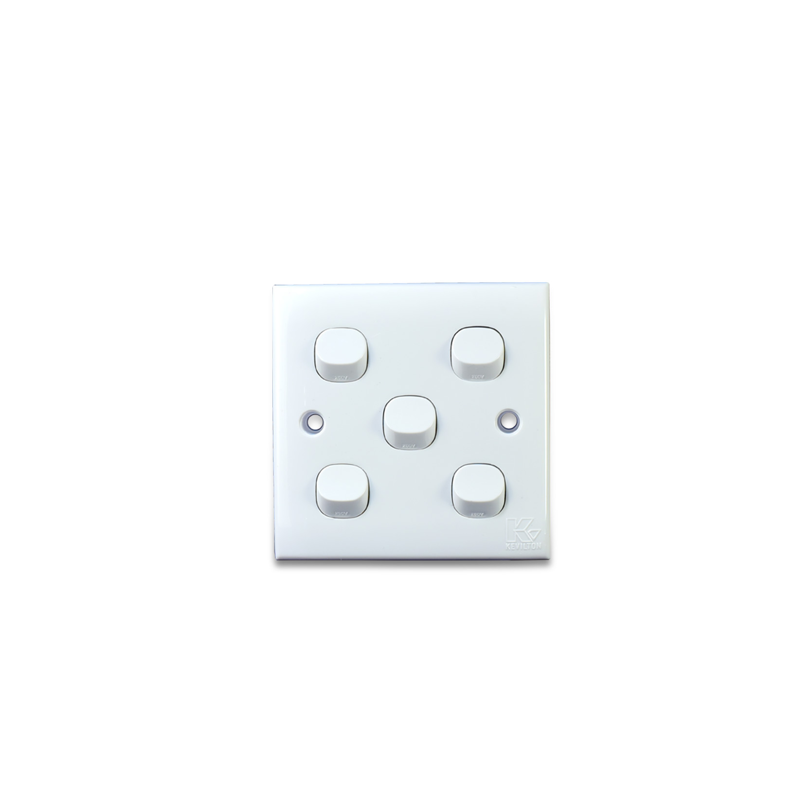 Product with a pure White front face with integral rocker design of the switch. Embossed terminal markings on the rear housing ensure terminal identification that saves wiring time. Clearly Marked Terminals for Easy Installation and suitable for Mains Voltage Lighting.