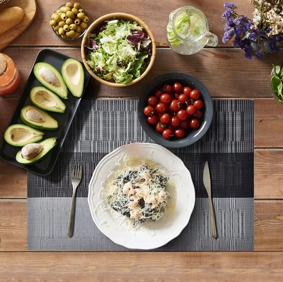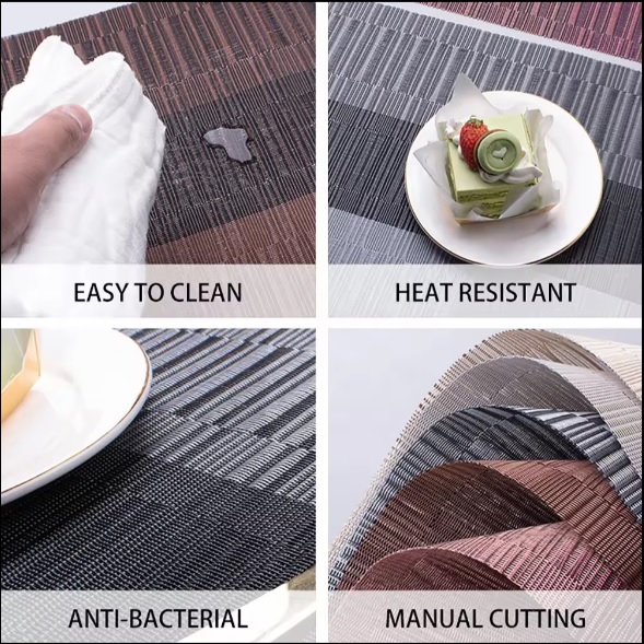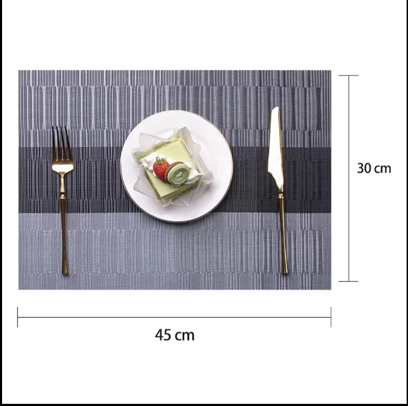 The fashion placemat would be a perfect decoration and life quality of your home, dining hall, kitchen, hotel, business office and wedding receptions, giving your table a royal feel. The dining table placemats recommended by customers due to place mats’ features, such as repeated use, non-slip, foldable and washable as well as pvc table mats nice appearance. can be cleaned with a soft sponge or wet cloth and soapy water, and dries very quickly, no machine wash, the placemats can be fold in any shape you want to fit in your cabinet or drawers.