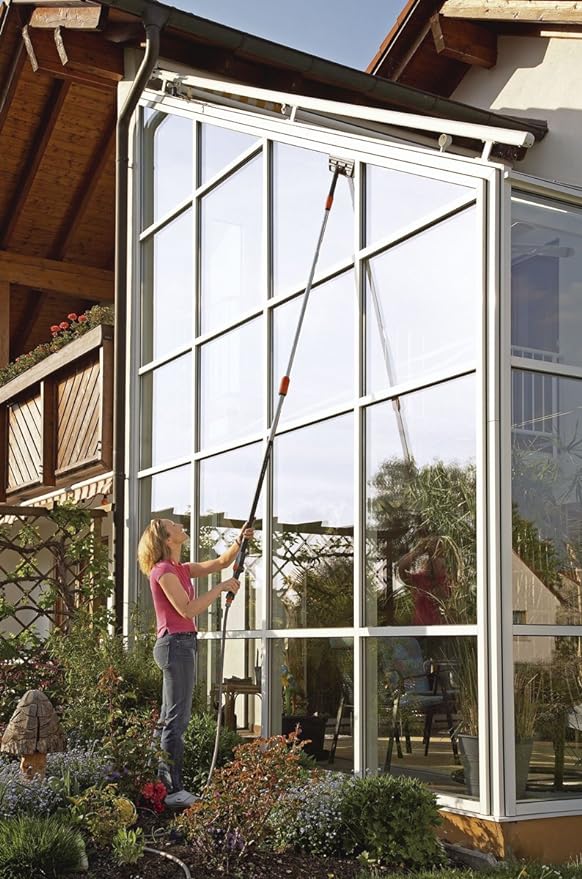 Do you need a Running Water Handle with which you can also clean in heights? Then the GARDENA Telescopic Running Water Handle is just the right thing for you. It is made of high-quality aluminium and is therefore light and sturdy. As the handle has easy-to-grip plastic coating, handling is pleasant, there are no scratch marks, the handle is anti-slip and the surface never feels cold.