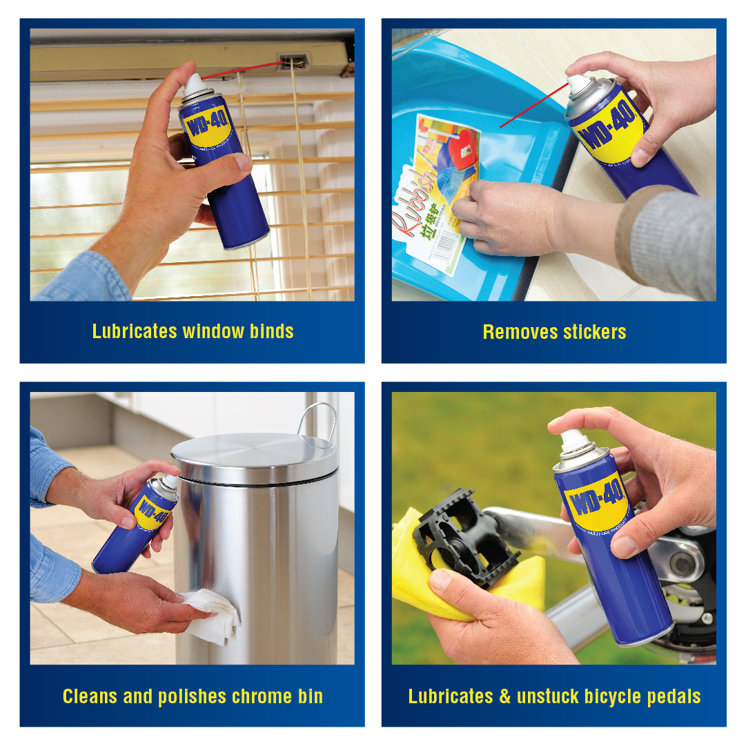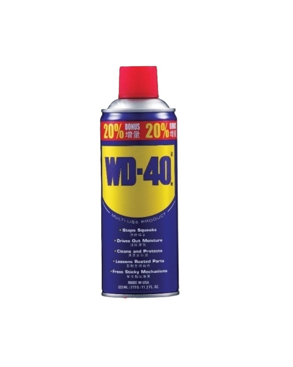 Aerosol Spray 333 ml Protects metal from rust and corrosion, penetrates stuck parts, displaces moisture from electric terminals, Lubricates and stops squeaks on windows and doors, cleans and protects power tools, keeps ball bearing dry and clean, loosens rusted bolts and nuts, Lubricates, and protects machinery from rust, CFC Free and Silicon Free.  It even removes grease, grime and more from most surfaces.