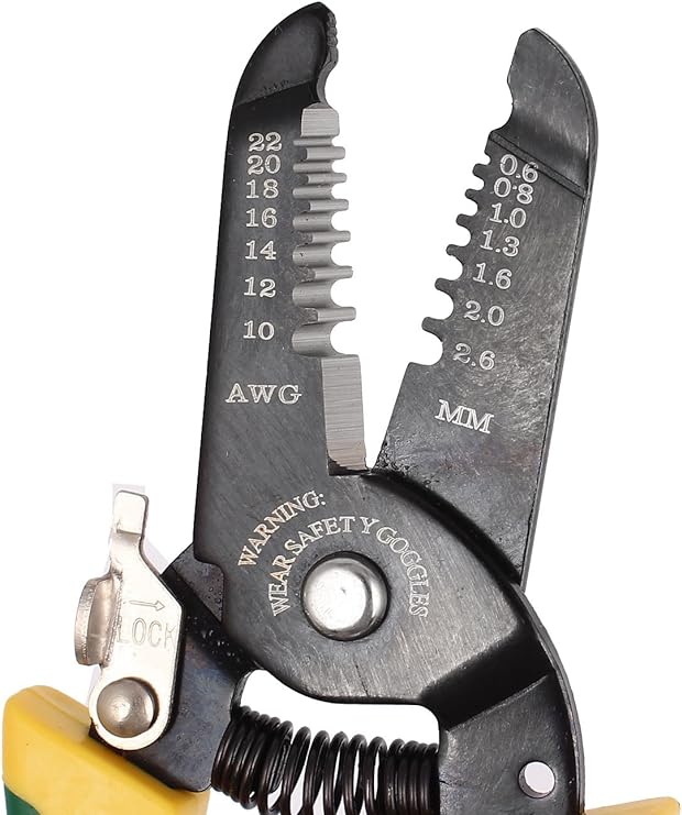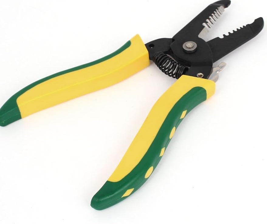 This wire stripper is a hand tool used for removing the insulation or sheathing from electrical wires to expose the underlying conductor. It is commonly used in electrical work, electronics, and wiring installations. Wire strippers typically have a pair of opposing cutting edges and stripping holes of different sizes to accommodate various wire gauges.