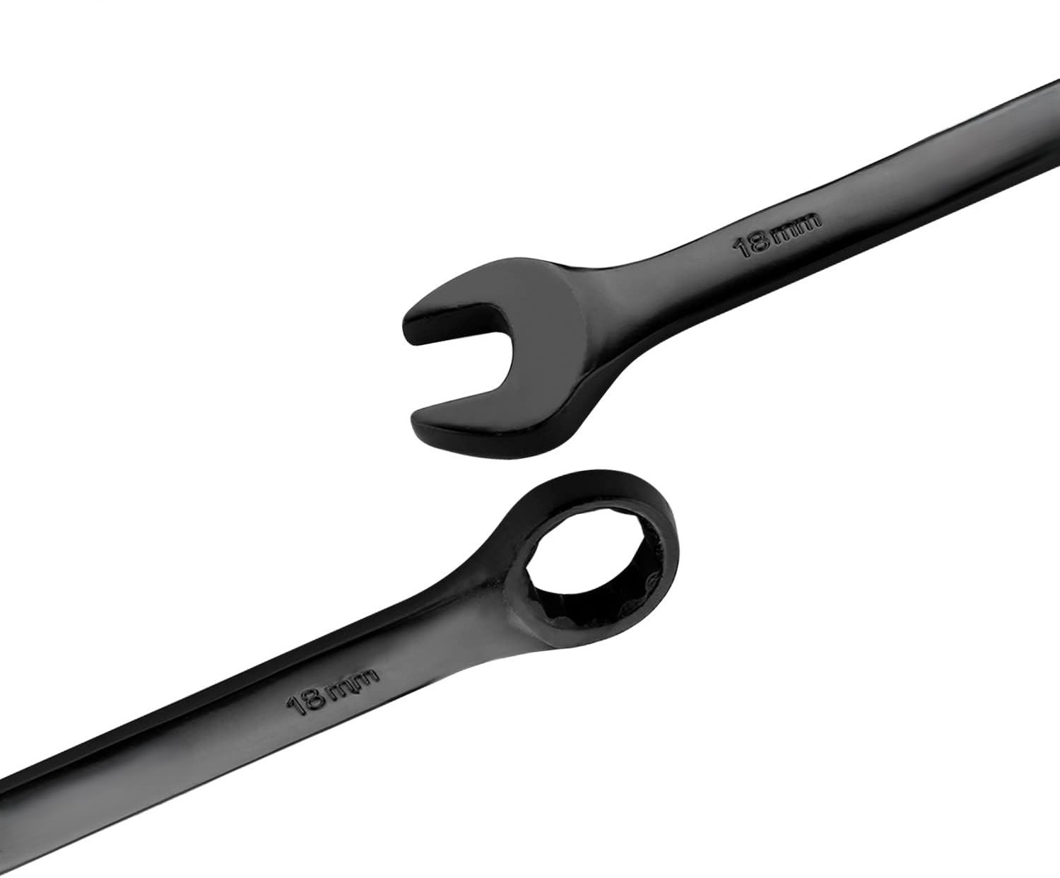 The Wrench Black 18 is a high-quality, robust hand tool designed for efficient fastening and loosening of 18mm nuts and bolts. Constructed from durable steel with a black finish, this wrench offers excellent resistance to wear and corrosion, ensuring long-lasting performance. Its ergonomic design provides a comfortable grip for optimal control and torque application, making it perfect for a variety of tasks such as automotive repairs, plumbing, and general maintenance. The Wrench Black 18 is an essential tool for both professionals and DIY enthusiasts, offering reliability and precision.